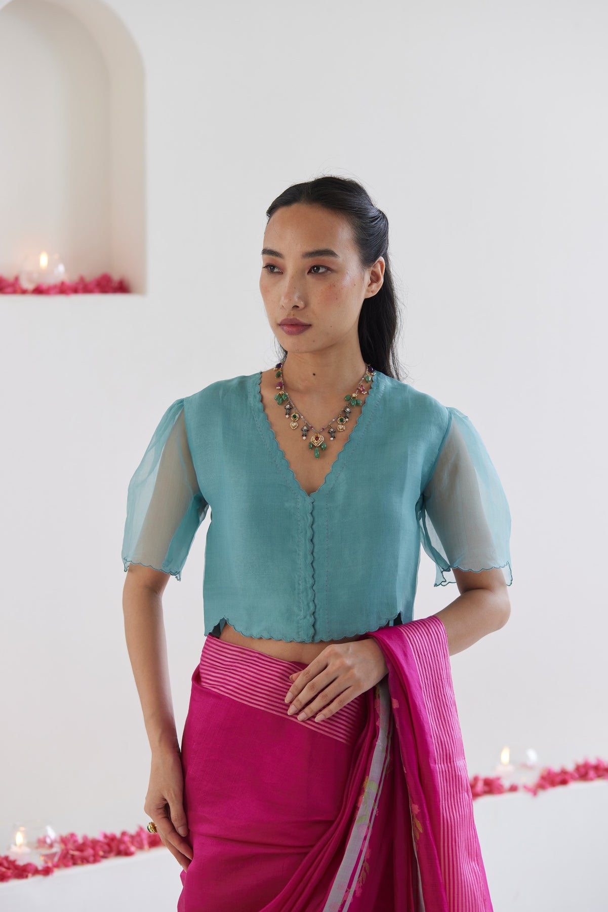 The Saree is paired here with the Fleeting Moments Blue Blouse (can be bought separately).