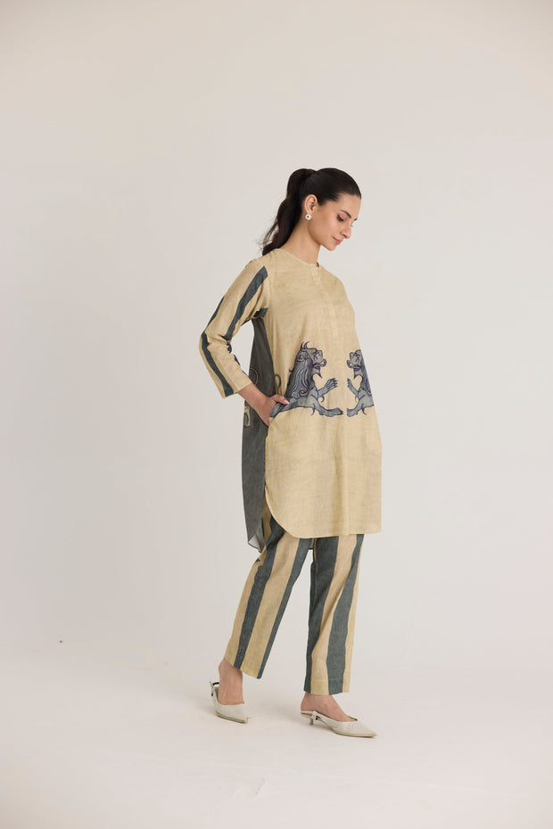 We proudly make our own prints (#yamprint) and strive to create new and contemporary artworks from traditional techniques of weaving, embroideries, sketching, and painting.We keep in mind our Indian roots and heritage and thus source our textiles from across India, including silks from Benaras and cotton and canvas from weavers in South India.